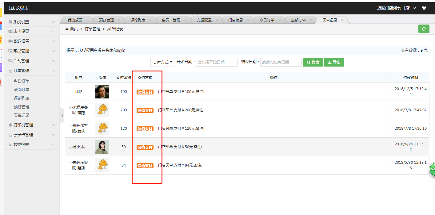 3.资金记录:包括所有余额支付的消费记录,充值记录和门店买单记录。
