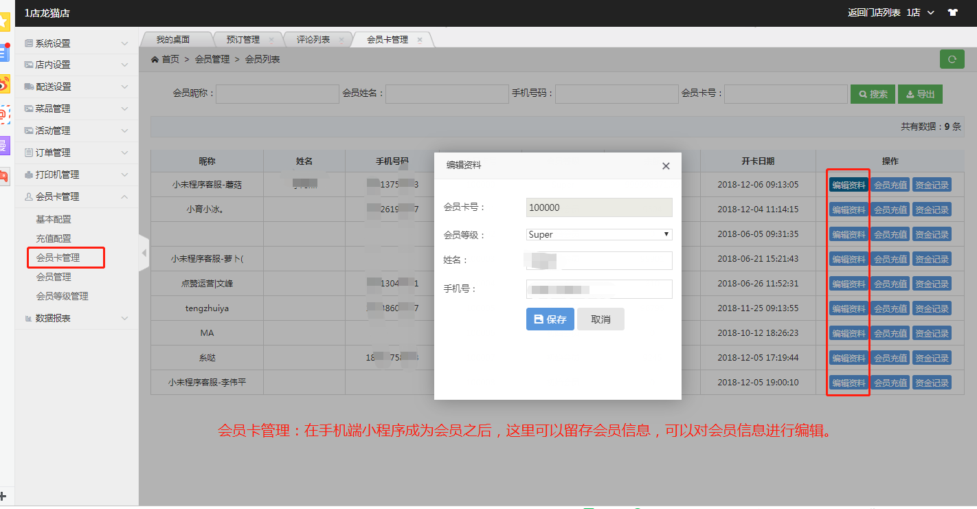 3.门店管理——编辑:可以编辑门店名称,登录用户名,登录密码。用登录用户名和密码可以登录门店