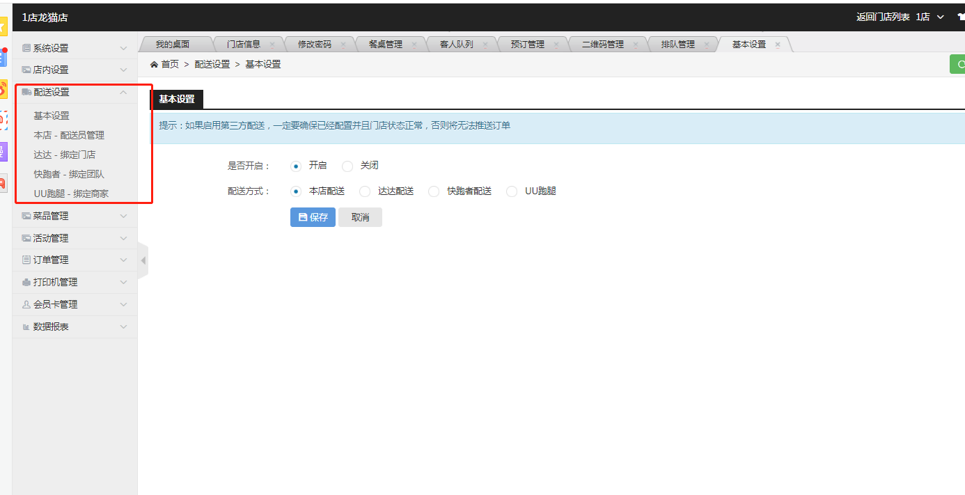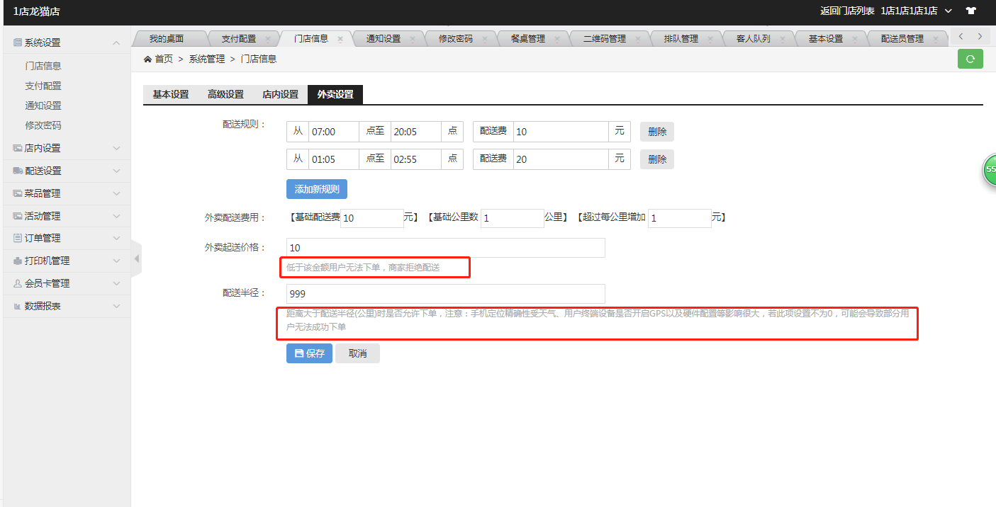 2.门店信息——基本设置——外卖营业时间,是否该店铺在营业时间内