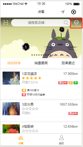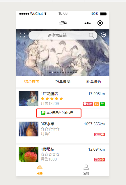3.商家地址和门店介绍必须填写,在前端显示:点餐页面——距离最近(用于各个店铺距离排序)