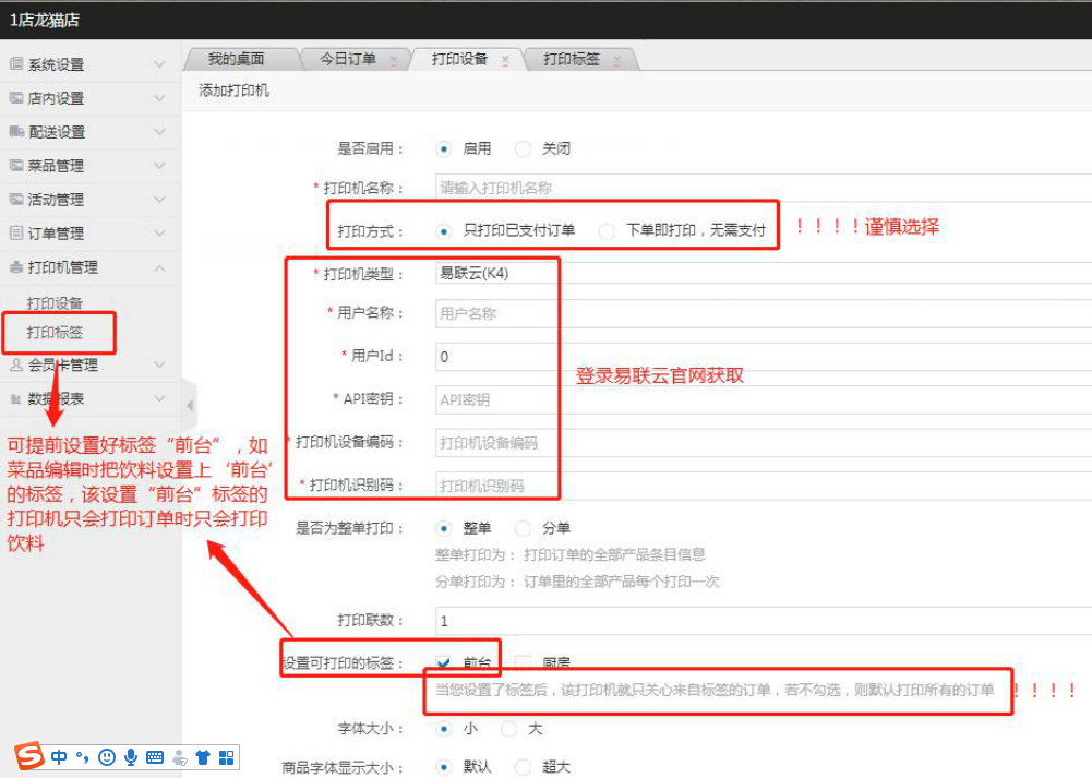 3.打印标签:打印机只会对具有这个打印标签的商品有反应的哦!!!只打印具有这个打印标签的商品。所以这个要谨慎选择哦,以防打印不出这个商品。