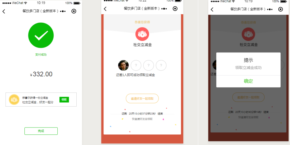 1.生成份数:社交立减金的库存数 2.每份人数:一份社交立减金需要分享的人数。