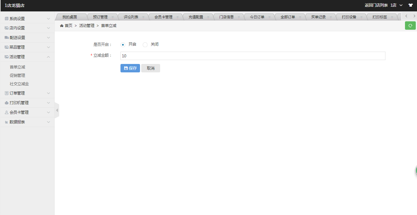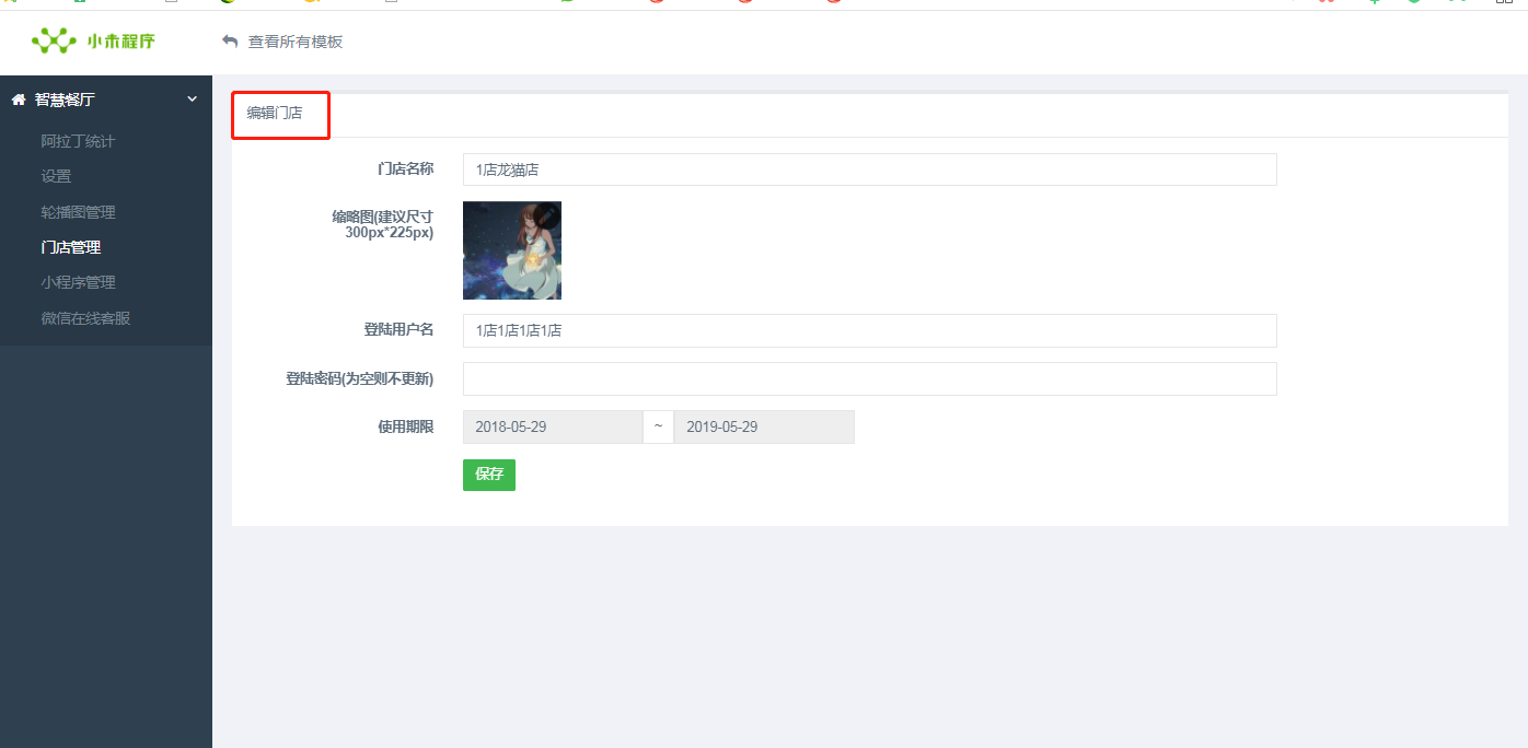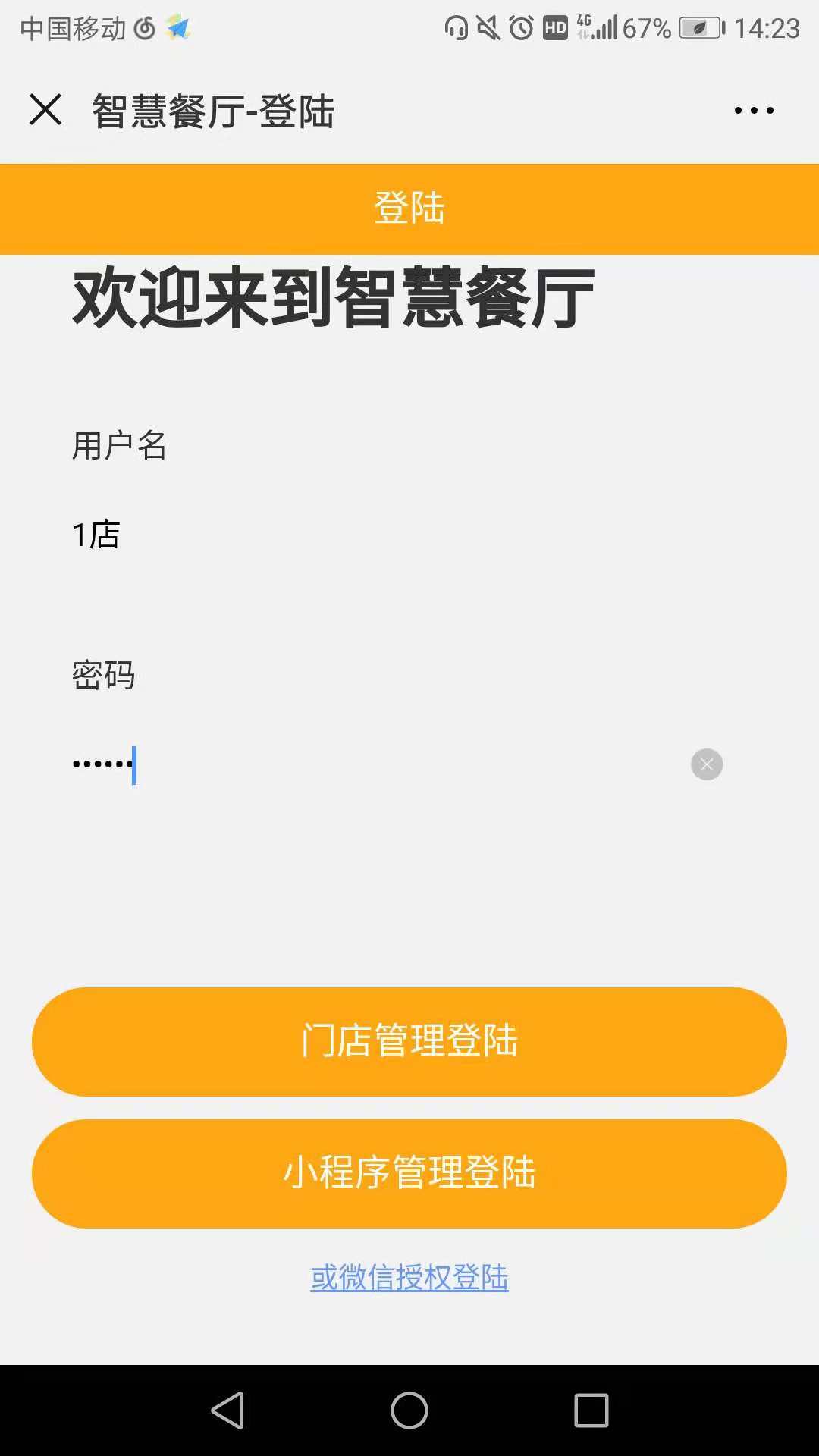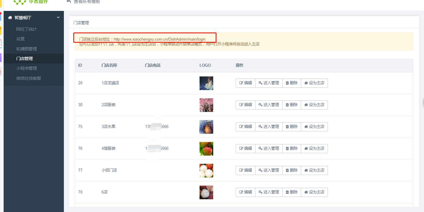门店独立后台地址:http://www.xiaochengxu.com.cn/DishAdmin/main/login
