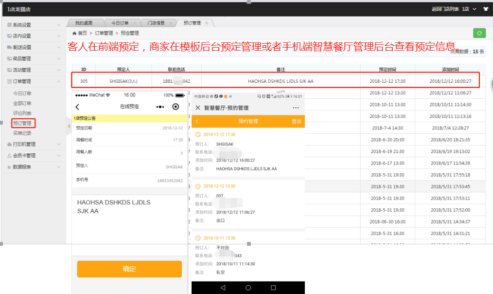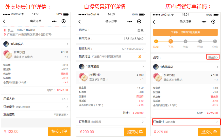 - 点餐备注:前端显示在客人订单详情页的订单备注里面。