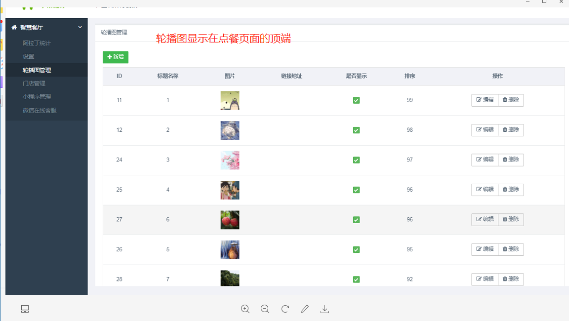 手机端智慧餐厅管理后台:http://www.xiaochengxu.com.cn/shop/admin#/