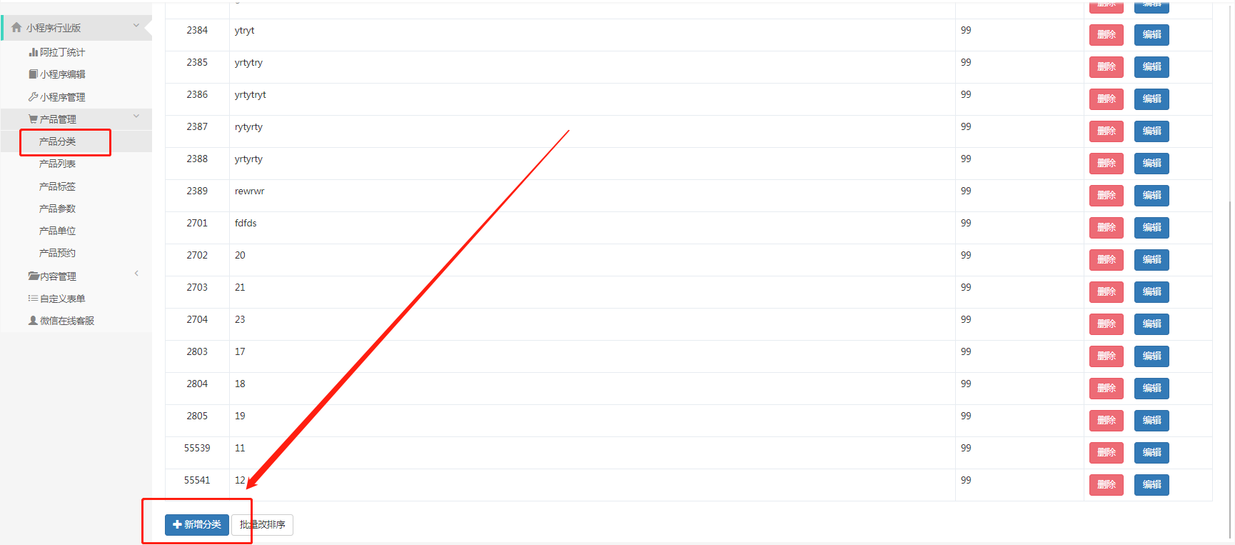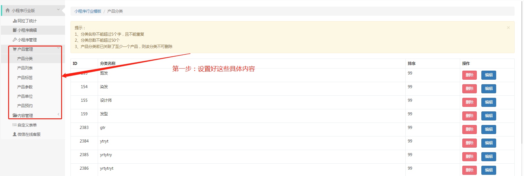 3、产品分类若已关联了至少一个产品,则该分类不可删除