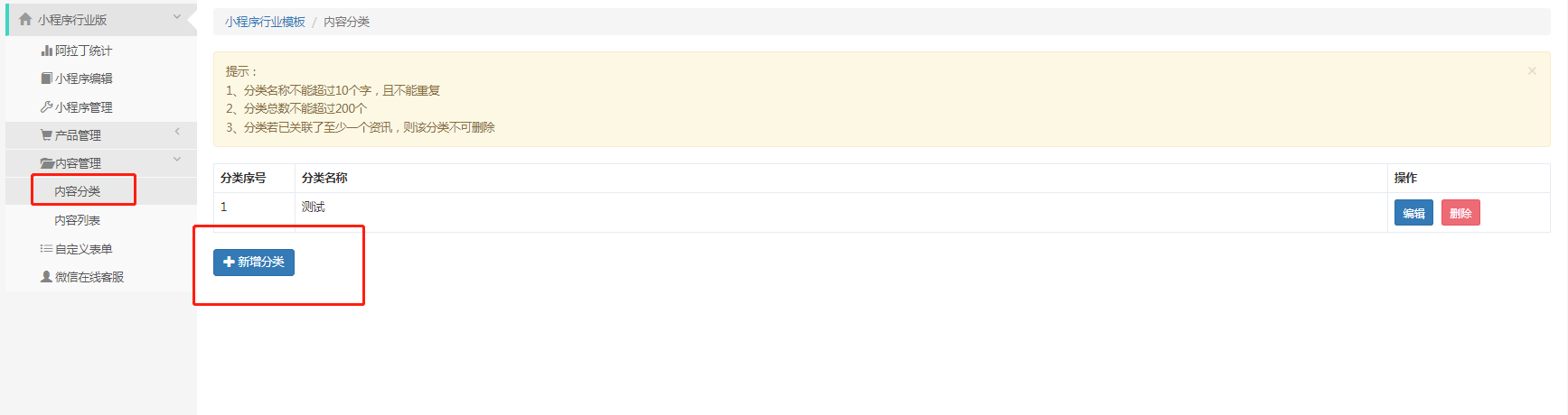 1、分类名称不能超过5个字,且不能重复