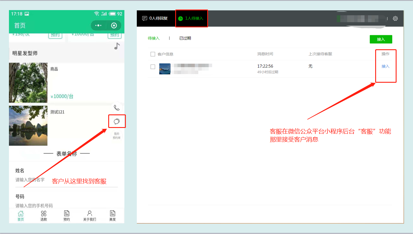 微信网页客服是在微信公众平台小程序后台客服反馈那里接受客户发送的消息