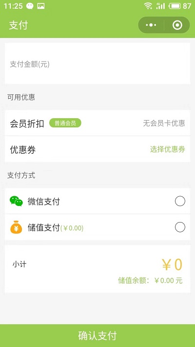 收款二维码:别人直接扫描这个二维码,可以直接输入支付金额和使用之前领取好的优惠券用微信支付或者储值支付