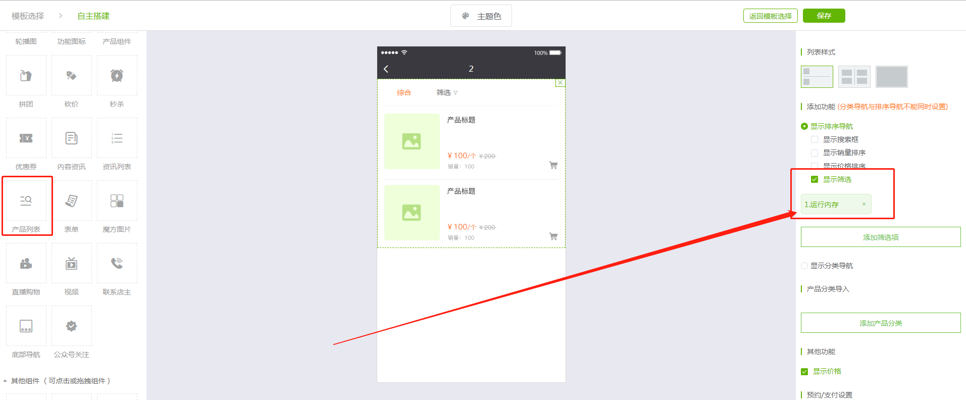 设置好,之后再去产品列表那里添加可以筛选的参数