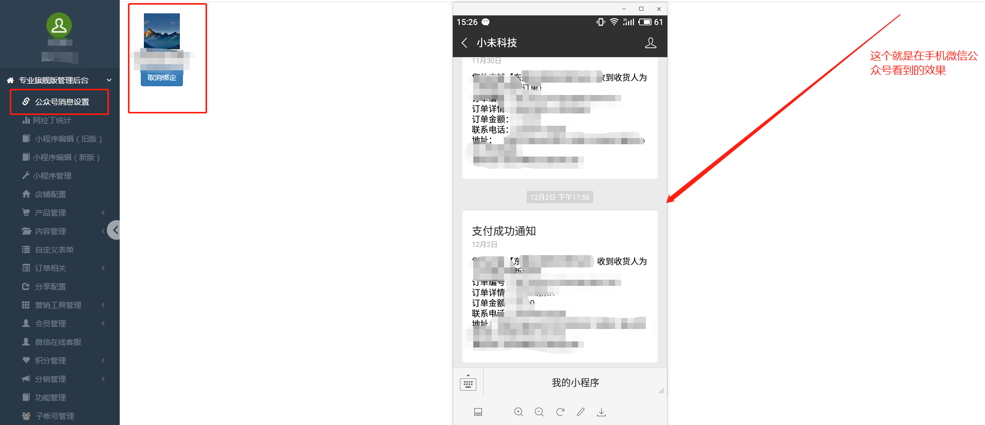 商家想让谁在微信上面接受别人下单信息的,就让谁扫码。设置正确后台,当有人在这个小程序下单的时候,那设置的微信号可以在“小未科技”公众号那里接受订单信息,以便准时发货。