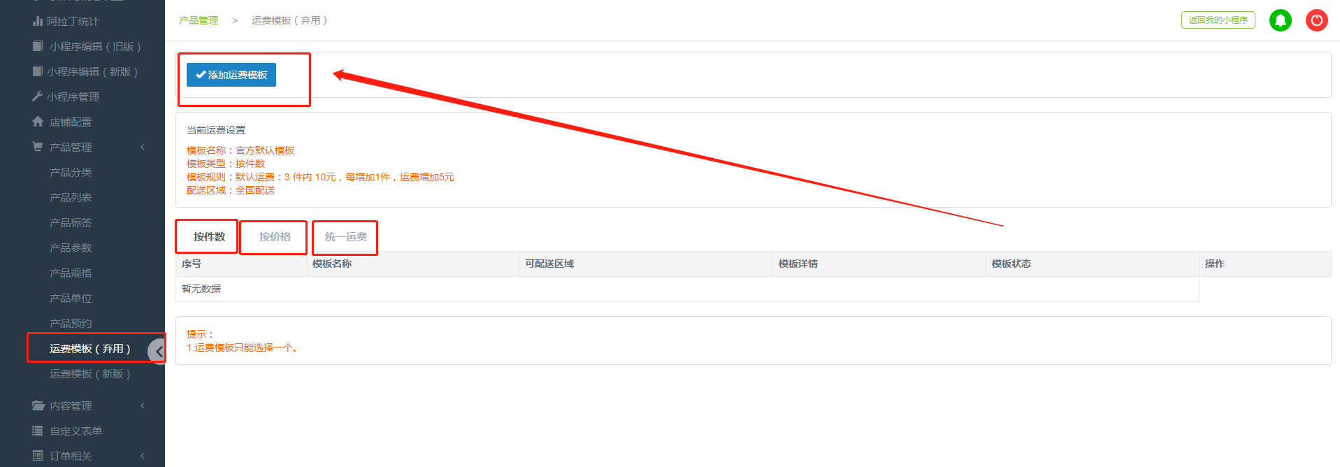 弃用运费模板这里设置运费规则是适用在所有商品的,无法单独设置一个商品用不同的规则
