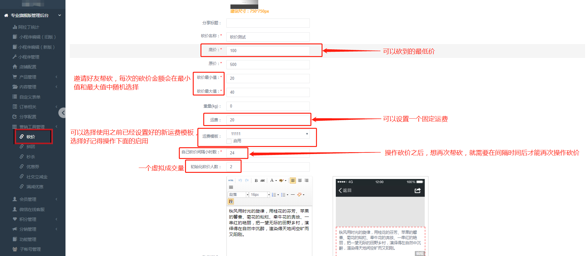 按价格:设置一个基本运价,满多少可以包邮。需要设置配送区域,不在设置的区域内无法下单。