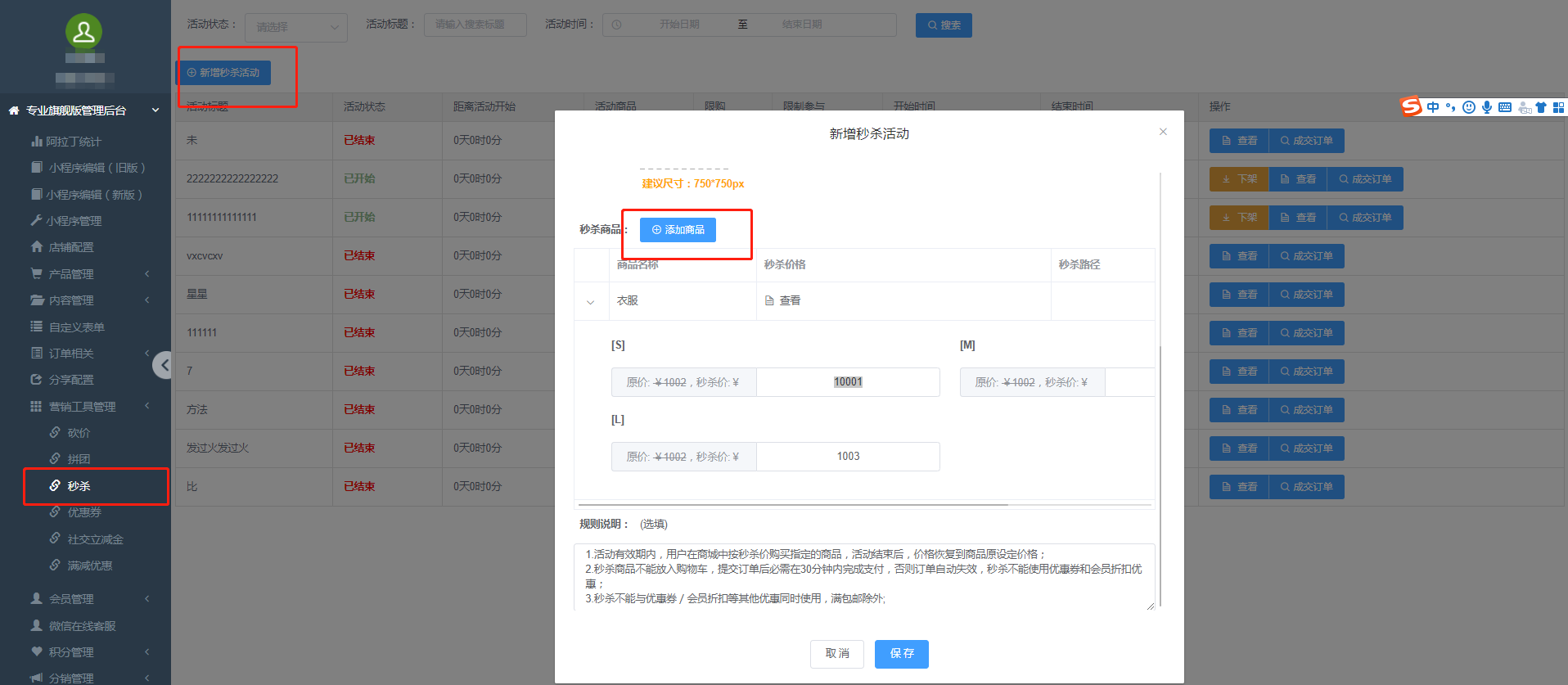 积分兑换需要现在积分商品这里设置好具体的商品信息。商品可以设置是“积分兑换”还是“积分+金额”兑换。需要设置好商品活动时限