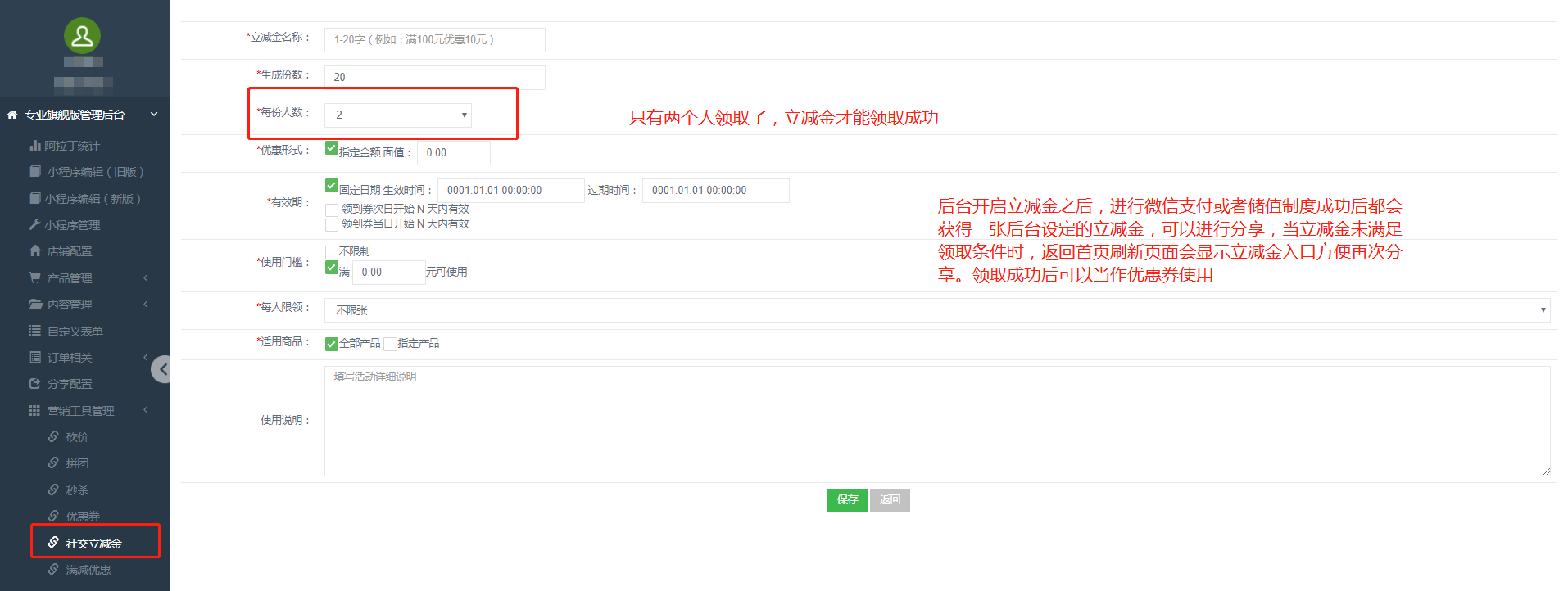 关闭:分销员之后无法建立客户关系,无法互相刷单,即使通过彼此的推广链接进入购买商品,也无法获得佣金。