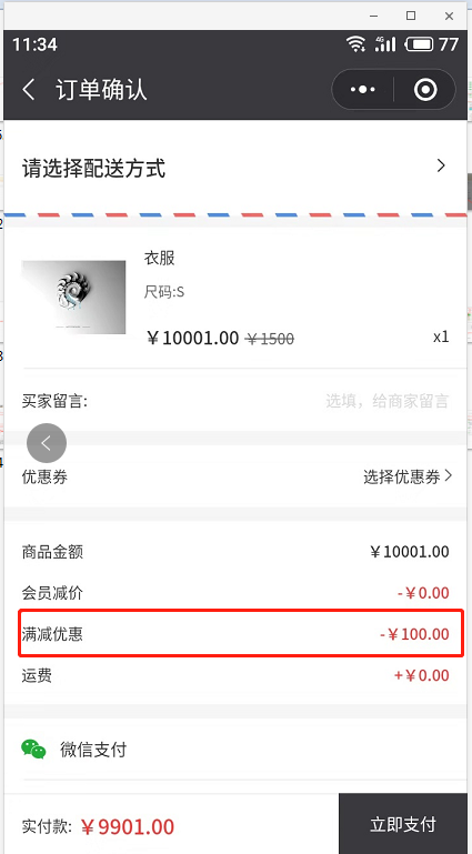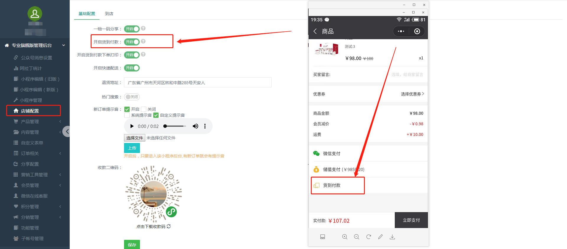 开启了货到付款功能,在商品下单的时候就可以选择”货到付款“