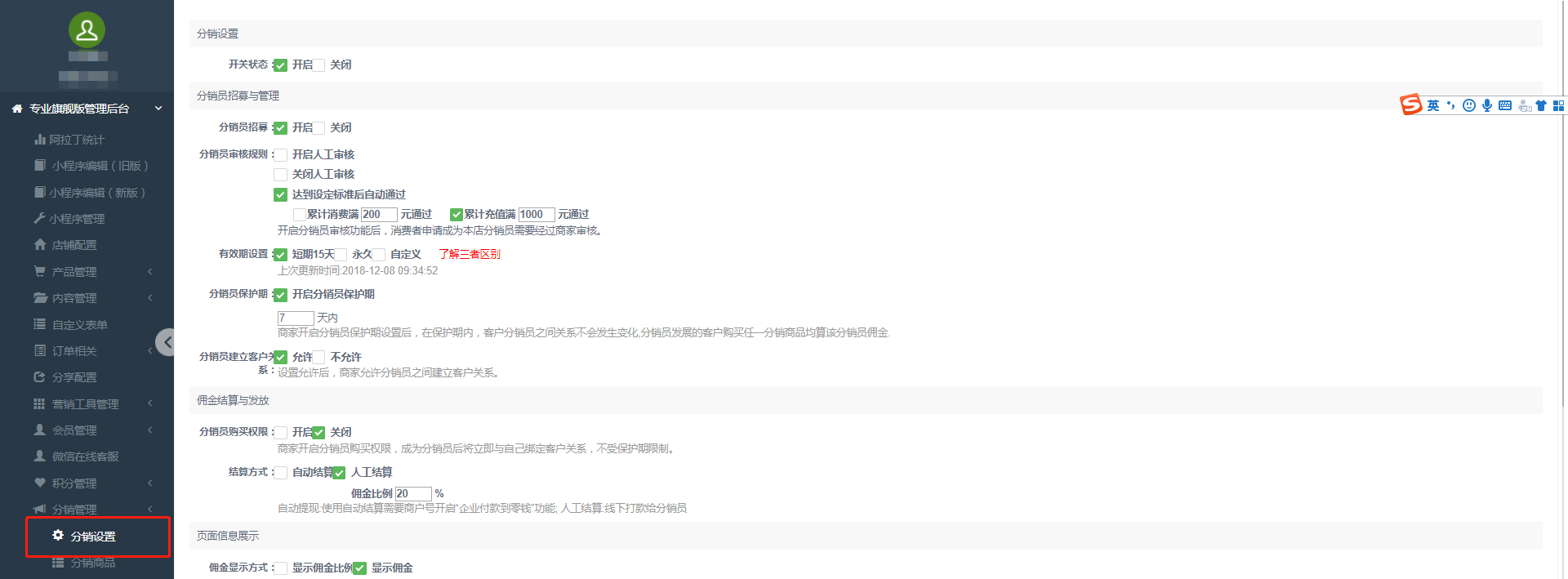 在开启分销员招募的情况下,最后一次设定更新时间为3月1号中午12点,那么在15天后,在3月16号中午12点,小程序端会关闭分销员招募开启端口。