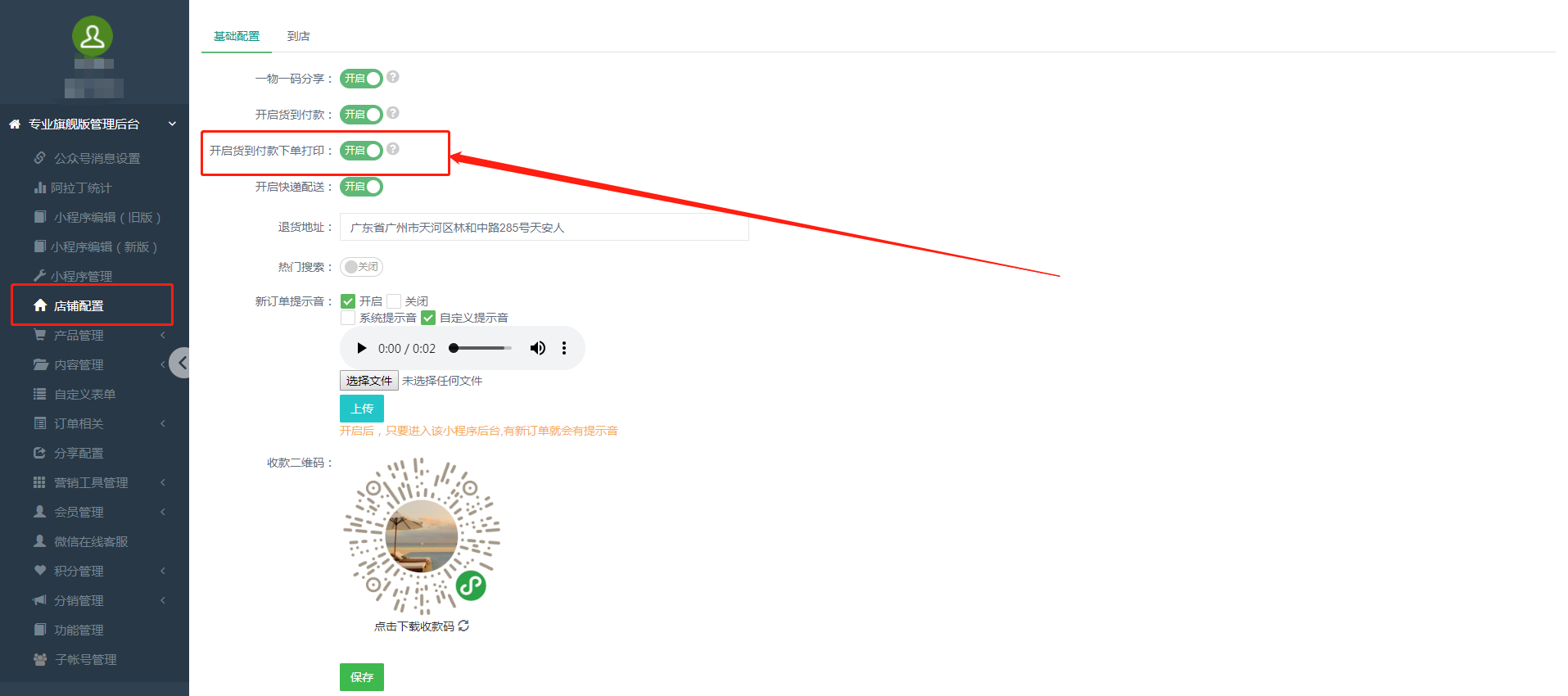 模板后台l连接了易联云打印机,如果想“货到付款”的订单也会打印小票,就在这里操作开启
