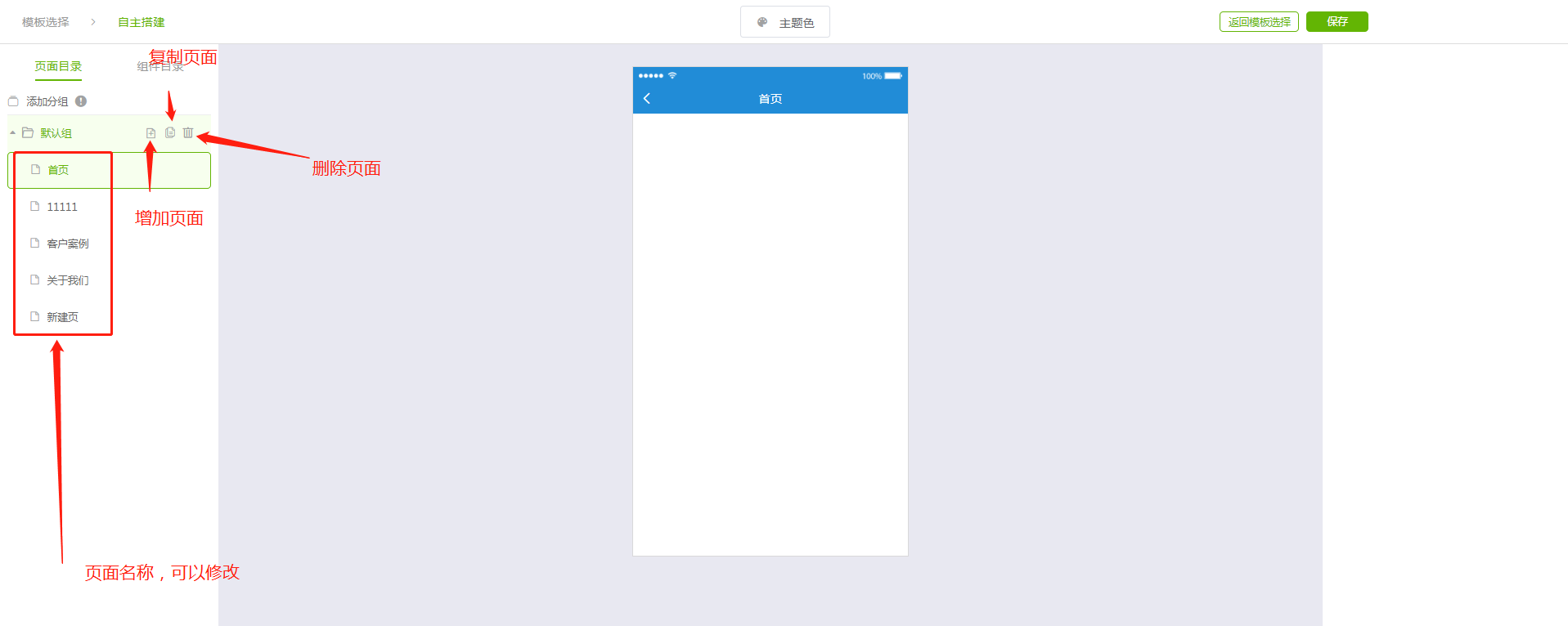 进入编辑界面,先添加好需要的页面,之后再去每一个界面添加各自需要的组件,再把添加的组件设置好具体的内容