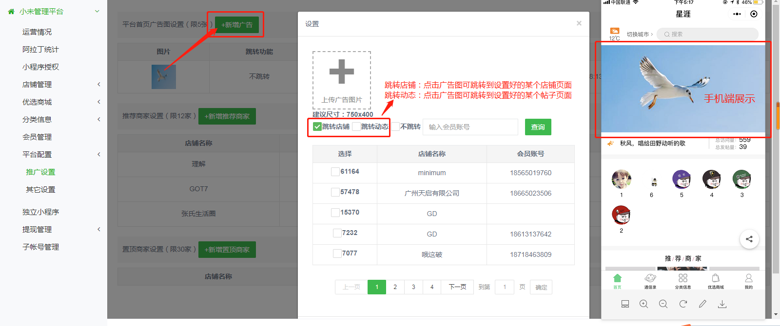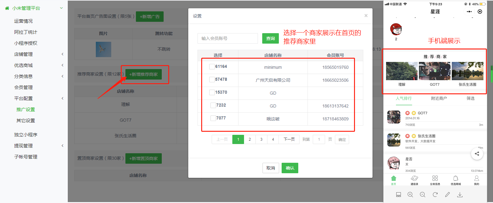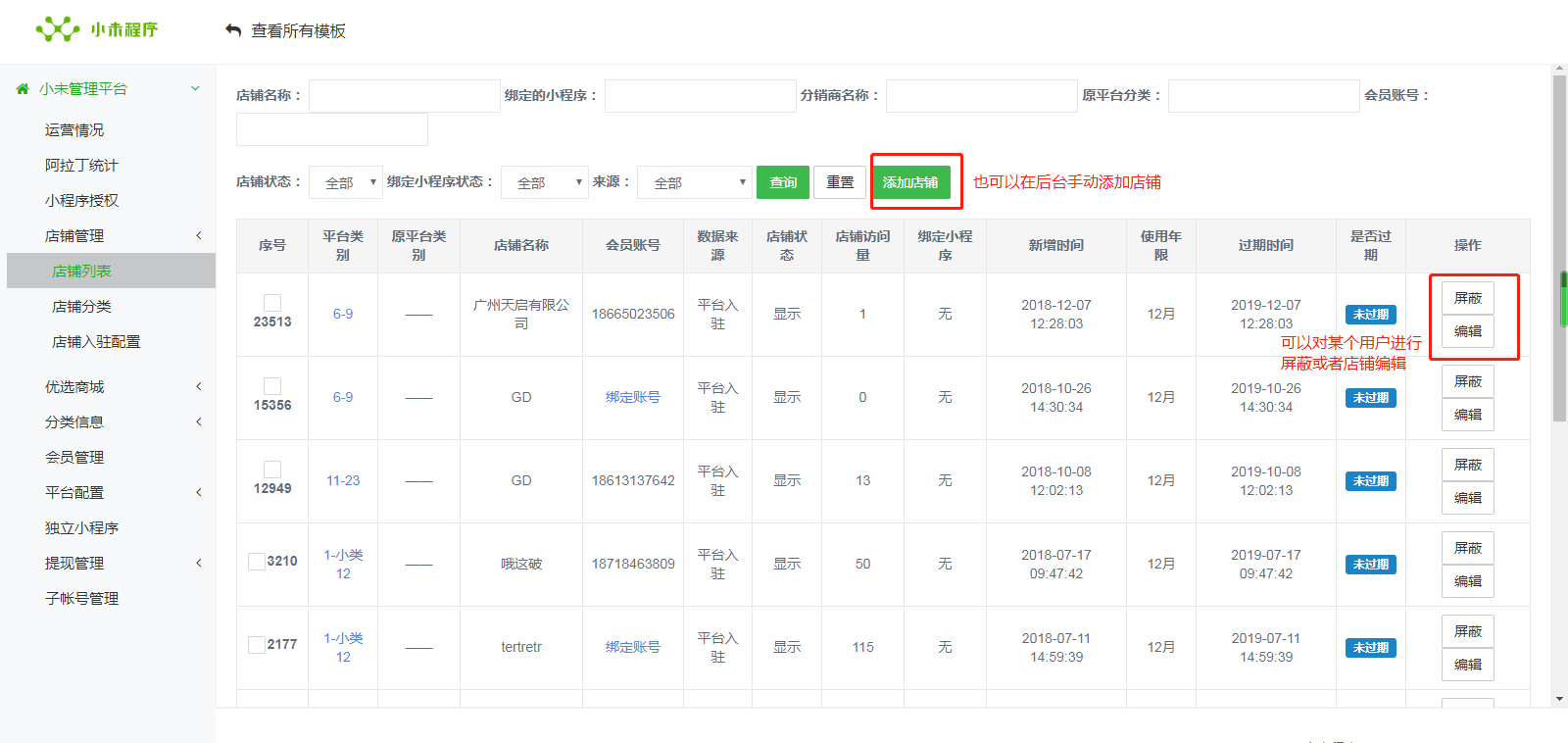 ①店铺列表:这里显示的是入驻到你这个平台的店铺
