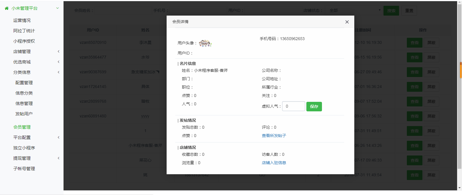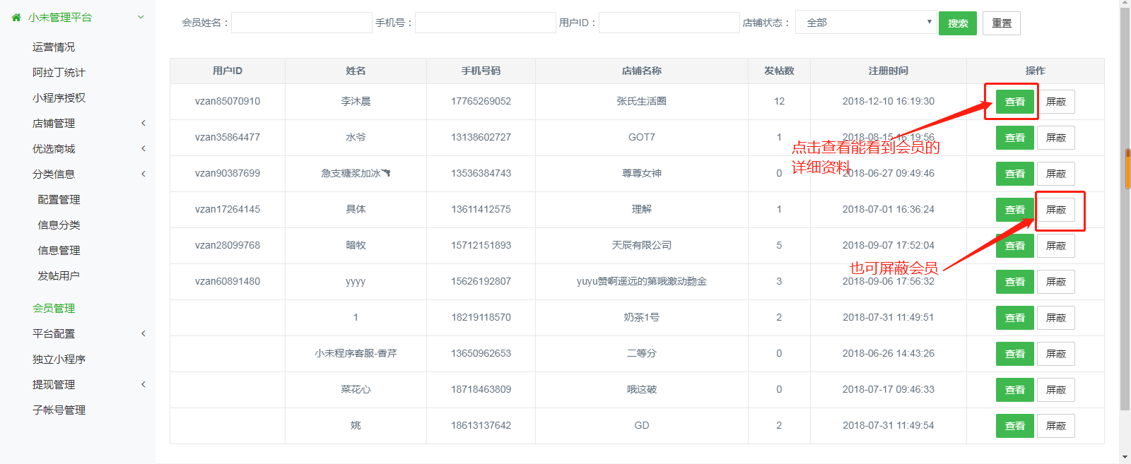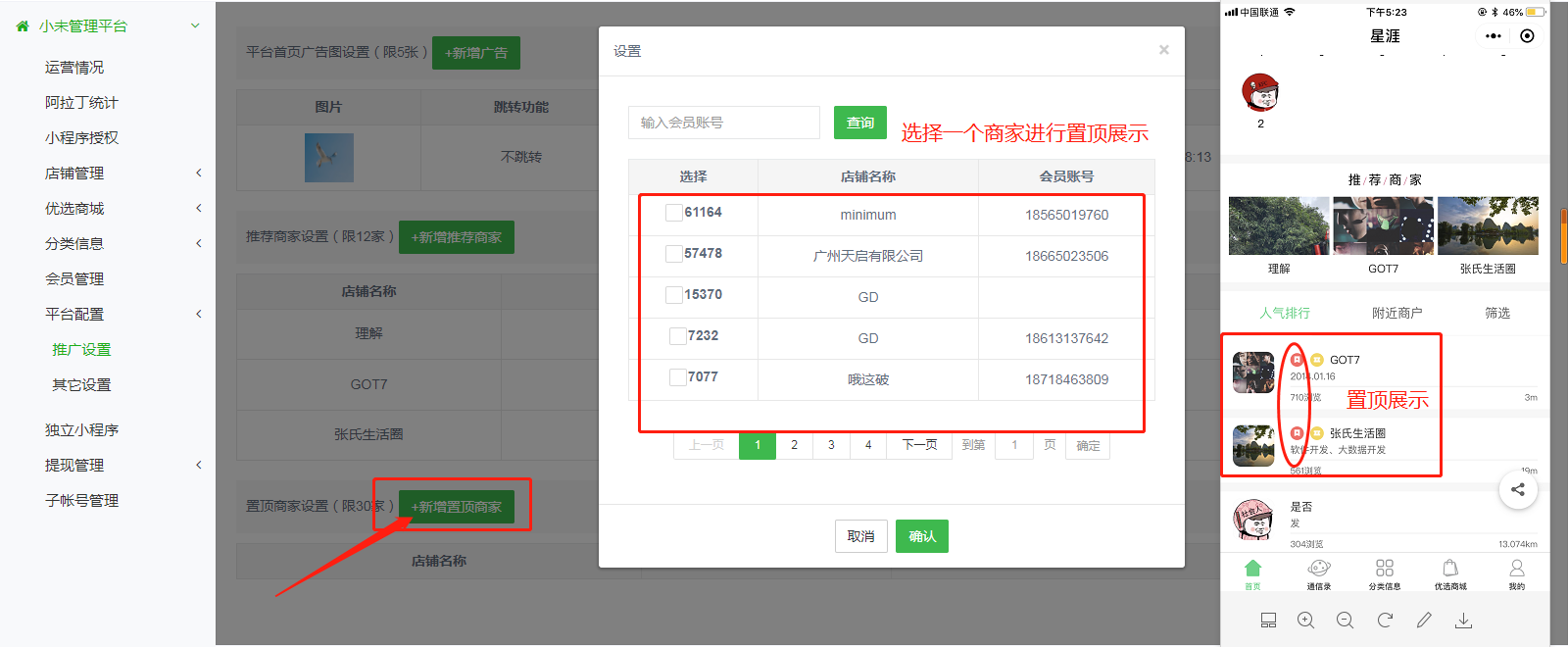 ①店铺列表:这里显示的是入驻到你这个平台的店铺