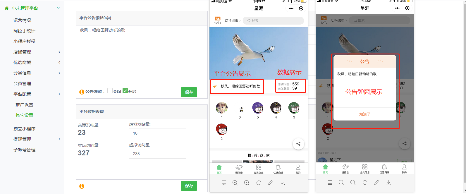 以上是平台后台的操作展示,每个版块都设置好内容后即可发布。
