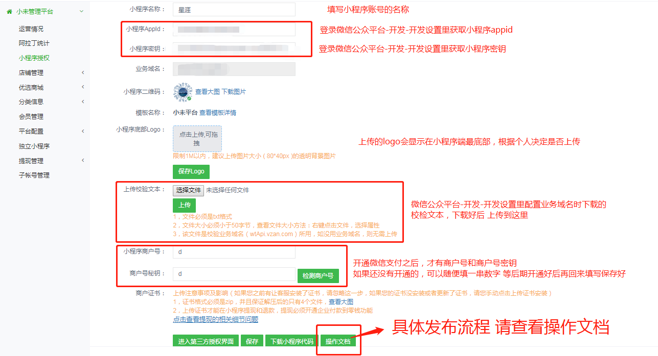 把页面需要填写好的内容填写完整后,点击操作文档查看详情的整个发布流程
