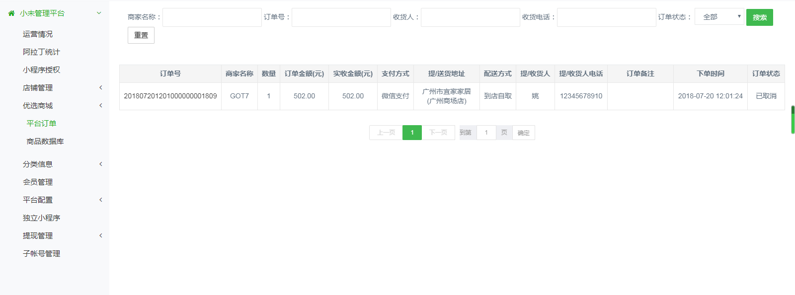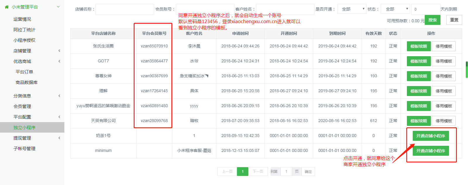 申请开通后,登录平台后台—“独立小程序”可以看得到商家申请开通的请求