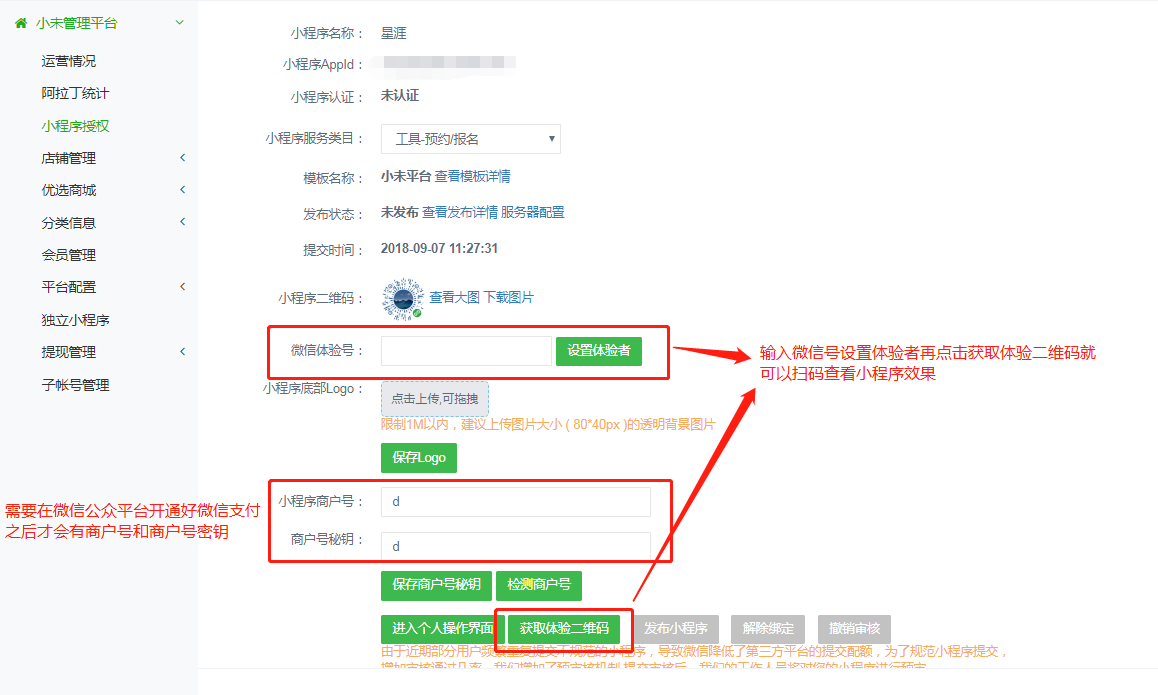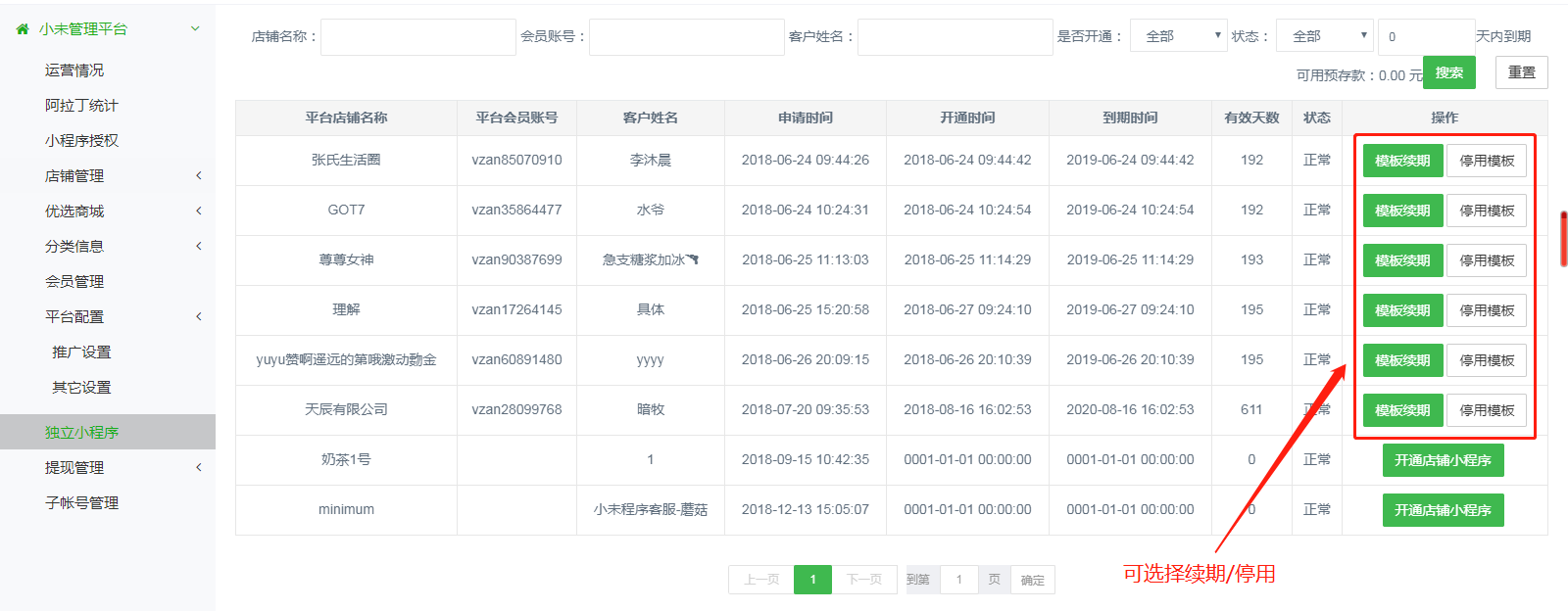 独立小程序开通是按年计时的 如到期可在后台操作续期