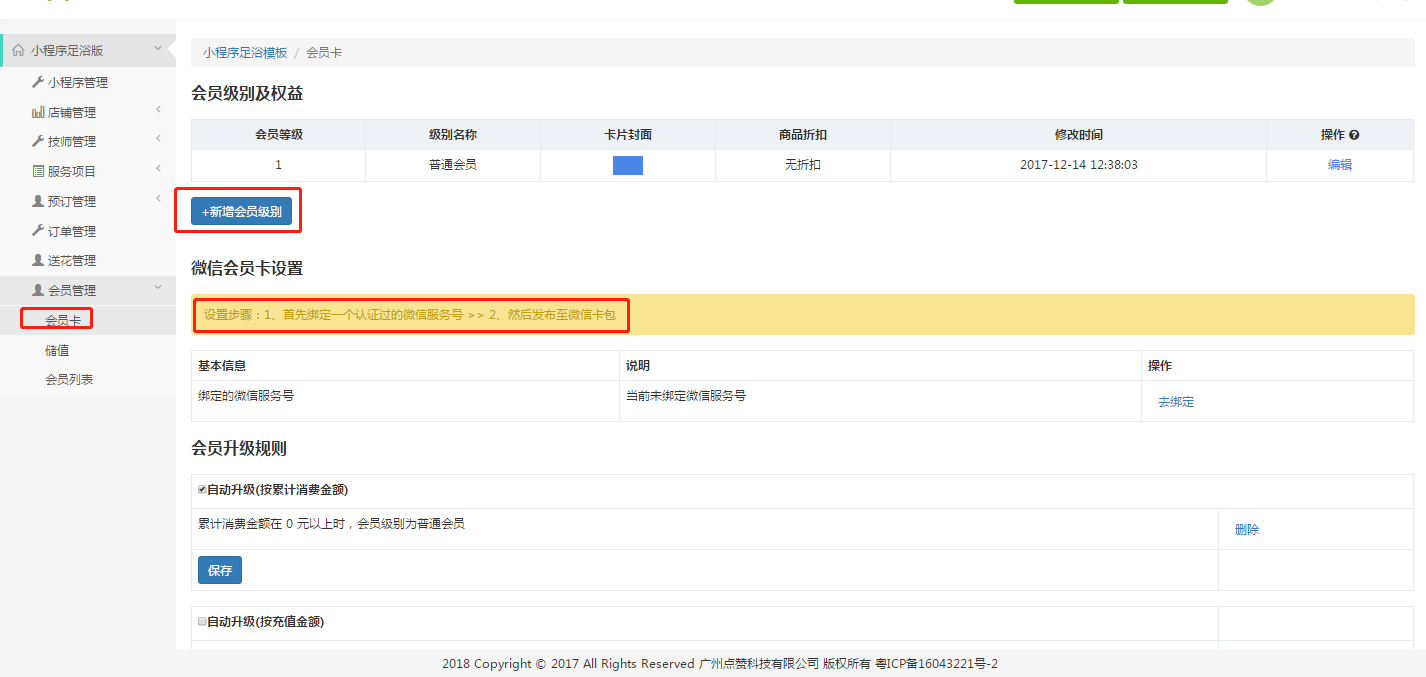 新增设置会员级别,可以设置不同等级的会员享受不同的折扣