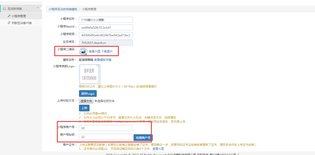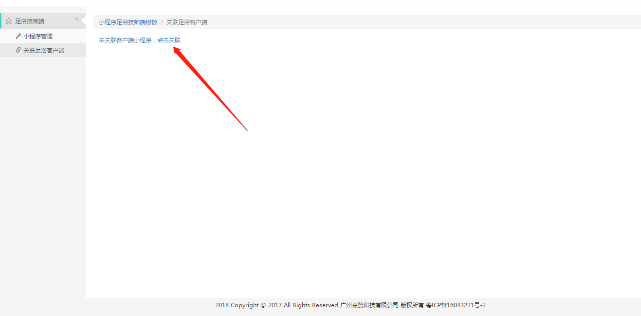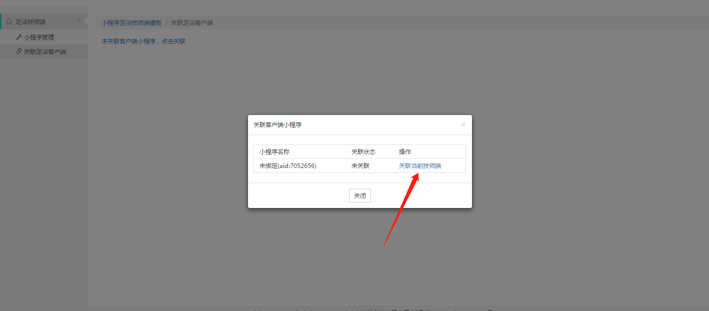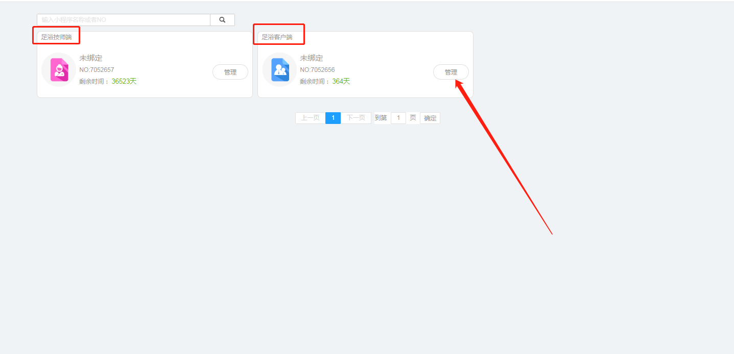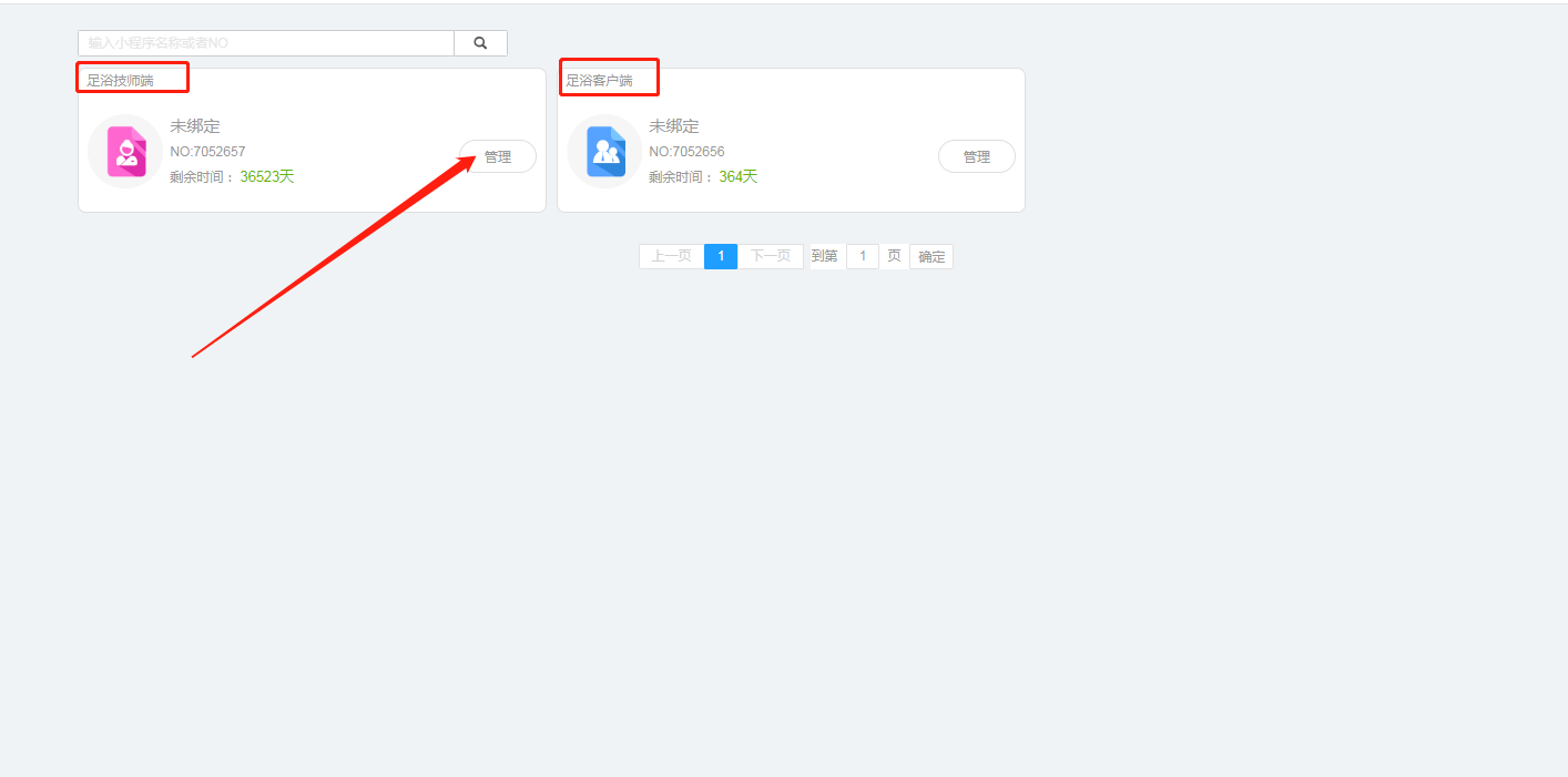 足浴版开通之后会有客户端和技师端,客户端和技师端都需要分别绑定一个小程序发布,绑定之后技师端关联客户端即可,首先打开客户端的管理