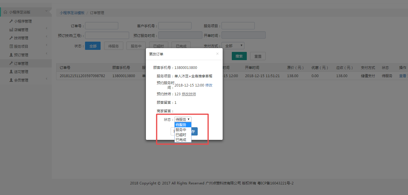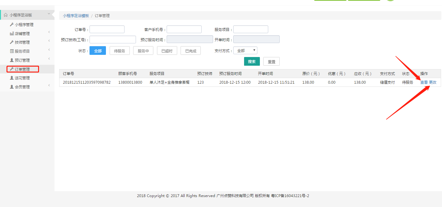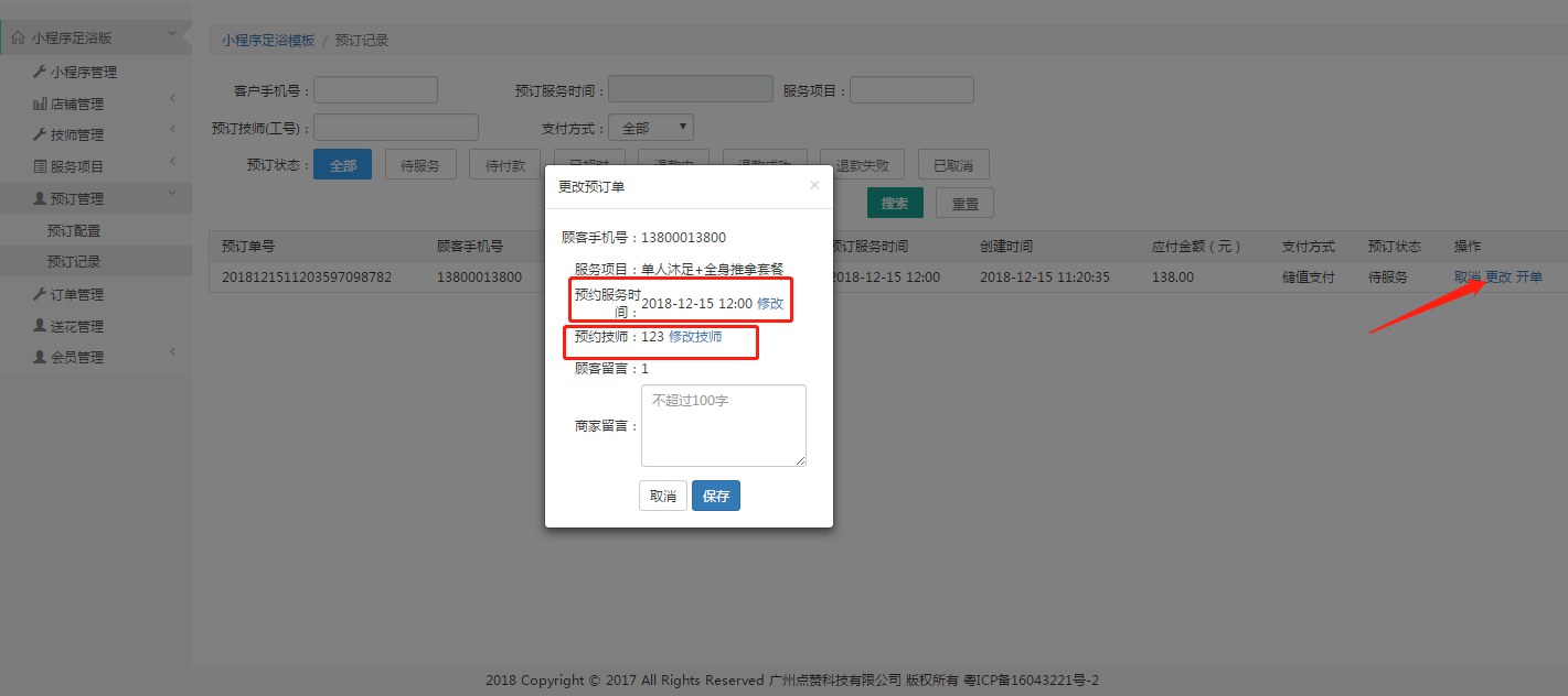 可以更改客户这个订单的预约时间,预约技术以及订单状态
