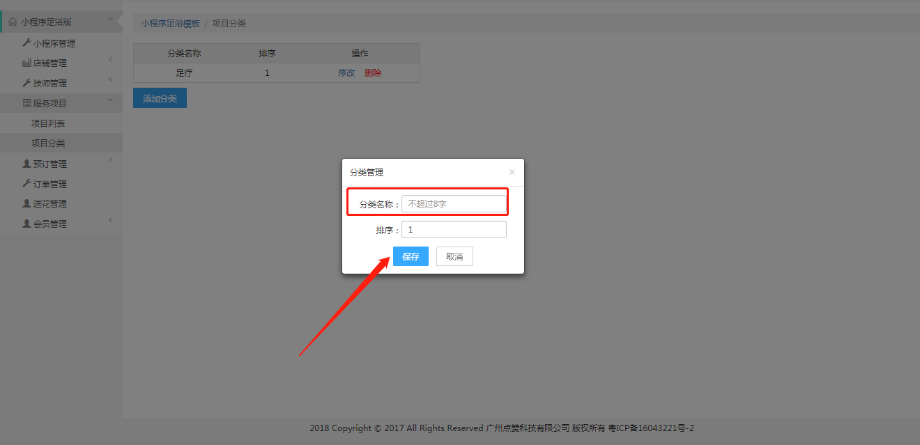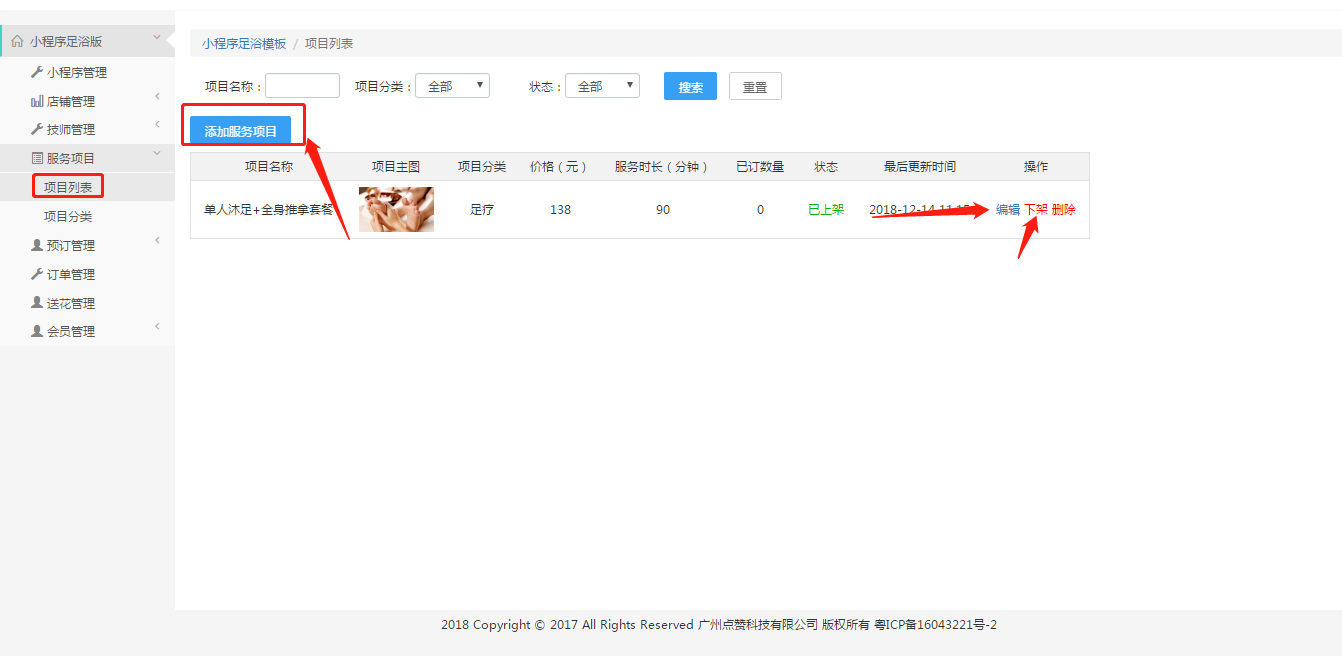(因为技师设置的时候需要选择技师可做项目,可先设置服务项目再设置技师管理)