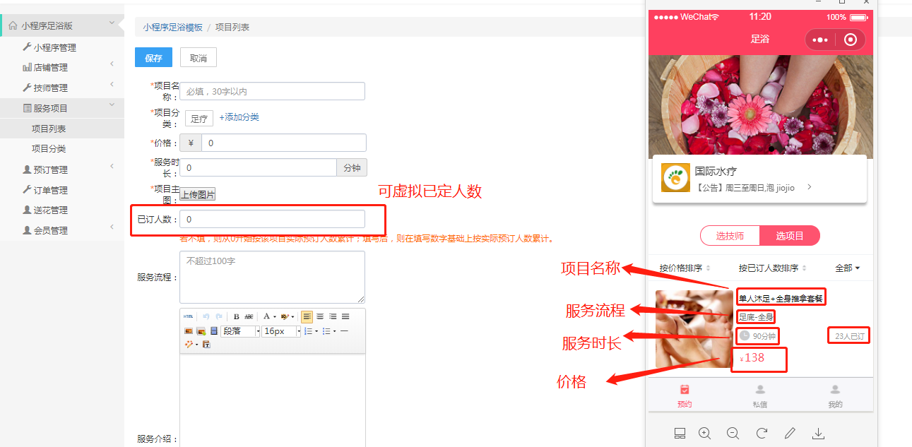 项目名称30字以内,项目主图上传正方形比例图片即可,已定人数是可设置虚拟已定人数,服务流程100字内