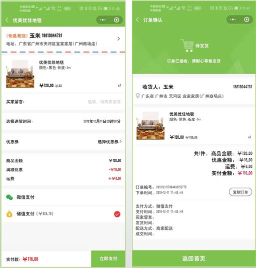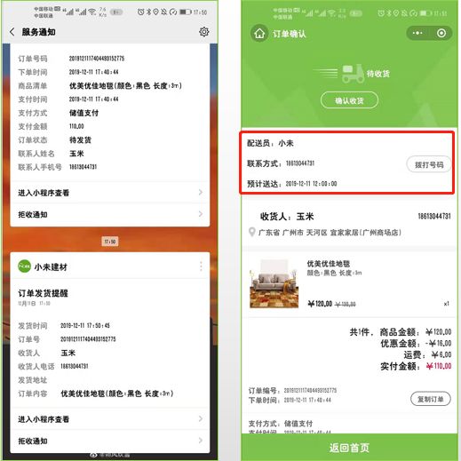 买家收到订单发货的服务通知后,可点击进入订单详情里,查看配送员的联系方式,有需要时可直接联系配送员